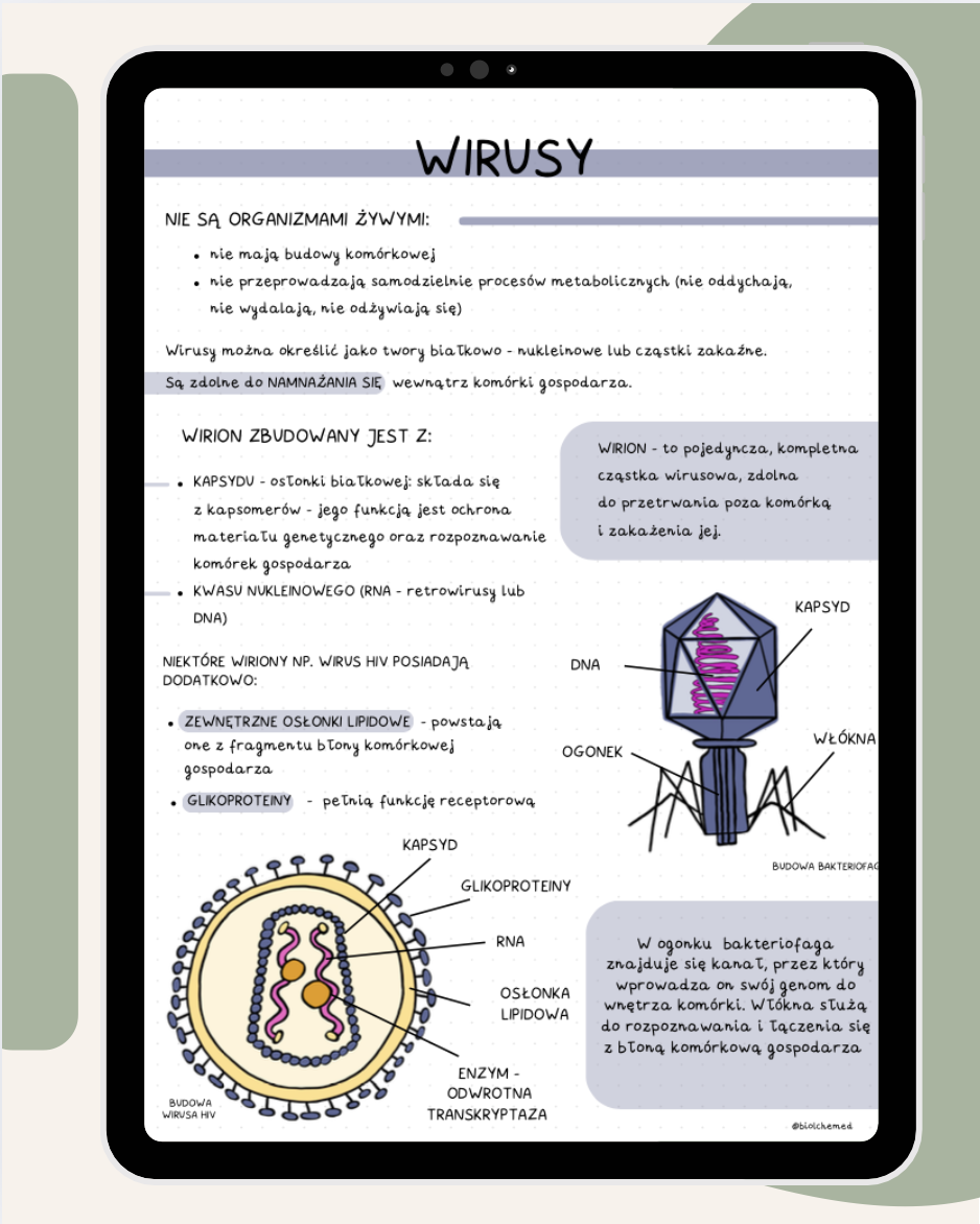 Stworzone przeze mnie maturalne notatki z biologii to materiał dla osób, które chcą uczyć się konkretnie, logicznie i w przejrzystej formie. Zamiast długich, męczących opisów znajdziesz tu ręcznie przygotowane schematy, rysunki i uporządkowane treści, które realnie skracają czas nauki i ułatwiają zrozumienie materiału.